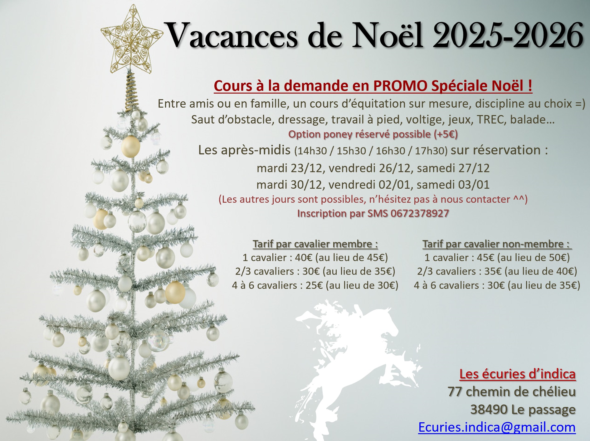 École d’équitation : enseignement en cours collectifs ou particuliers du débutant au cavalier confirmé avec un cheval d’école ou votre propre cheval, cours baby de 3 ans à 7 ans, cours débutant à partir de 7 ans. Les cours collectifs club sont limités à 6 places pour garder la qualité de notre enseignement =) les activités sont diverses et variées : Saut d’obstacle, dressage, pony-game, balade, travail à pied éthologique, longe, voltige, longues rênes, TREC, jeux, mise en selle, etc… Chaque vacances scolaires, des stages d’équitation sont proposés, notamment pour les passages de Galop !