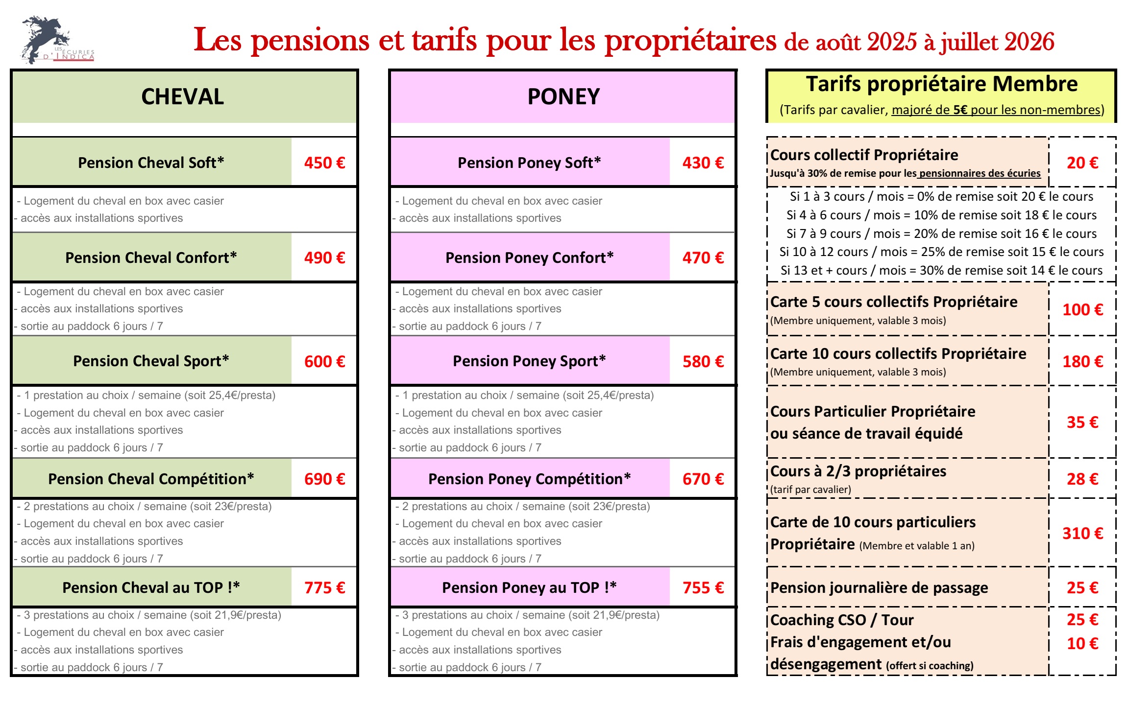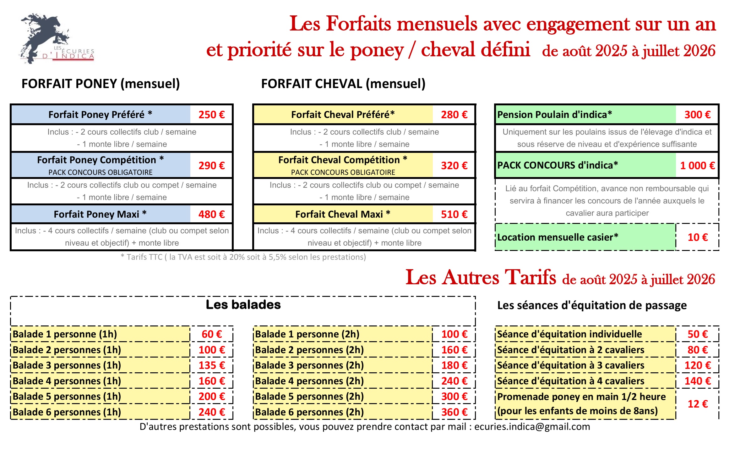 Modes de règlements possibles : chèque / espèce / Carte Tattoo / Pass Région / Pass Sport.